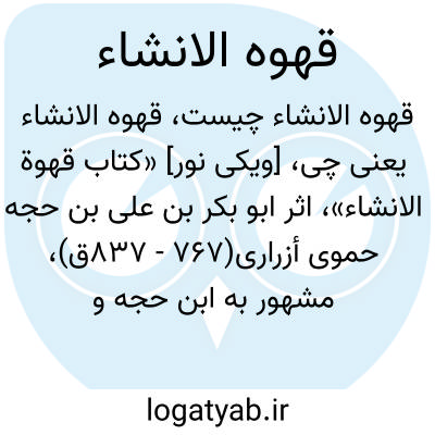 [ویکی نور] «کتاب قهوة الانشاء»، اثر ابو بکر بن علی بن حجه حموی أزراری(767 - 837ق)، مشهور به ابن حجه و به زبان عربی است. کتاب، مجموعه نامه ها و مکاتبات رسمی(دیوانیات) و غیر رسمی(اخوانیات) با معاصران اوست که حاصل دوران اشتغال او در دولت سلطان سیف الدین مؤید است. این مجموعه، علاوه بر نامه های ملک مؤید و ملک ظاهر، نامه های بسیاری از اشراف و بزرگان و قضات و رؤسای مصر را نیز در بر دارد و به همین جهت، نمونه جالبی از انشا و ادب آن دوره می باشد. این کتاب، علاوه بر جنبه ادبی، حاوی فواید تاریخی بسیاری نیز هست.