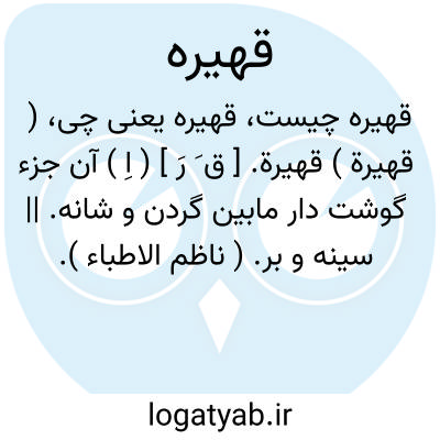 ( قهیرة ) قهیرة. [ ق َ رَ ] ( اِ ) آن جزء گوشت دار مابین گردن و شانه. || سینه و بر. ( ناظم الاطباء ).