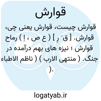 قوارش. [ ق َ رِ ] ( ع ص، اِ ) رماح قوارش؛ نیزه های بهم درآمده در جنگ. ( منتهی الارب ) ( ناظم الاطباء ).