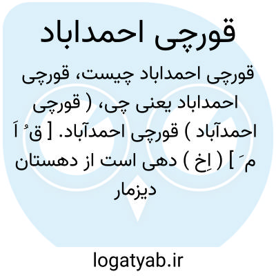 ( قورچی احمدآباد ) قورچی احمدآباد. [ ق ُ اَ م َ ] ( اِخ ) دهی است از دهستان دیزمار خاوری بخش ورزقان شهرستان اهر، سکنه آن 128 تن.آب آن از رودخانه مردانقم و ارس و محصول آن غلات، انار، انجیر، انگور و سردرختی و شغل اهالی زراعت و گله داری و صنایع دستی زنان آنجا الک و غربال بافی است.راه مالرو دارد. ( از فرهنگ جغرافیایی ایران ج 4 ).