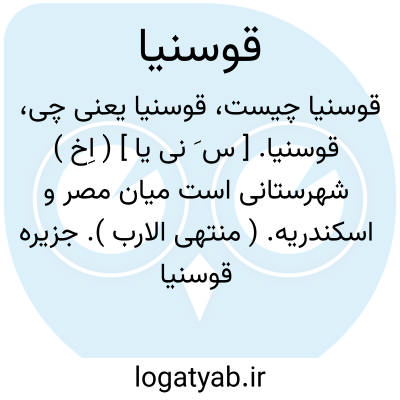 قوسنیا. [ س َ نی یا ] ( اِخ ) شهرستانی است میان مصر و اسکندریه. ( منتهی الارب ). جزیره قوسنیا شهری است میان قاهره و اسکندریه. ( از معجم البلدان ).