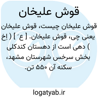 قوش علیخان. [ ع َ ] ( اِخ ) دهی است از دهستان کندکلی بخش سرخس شهرستان مشهد، سکنه آن 550 تن. آب آن از قنات، محصول آن غلات و شغل اهالی آنجا زراعت، مالداری، صنایع دستی زنان آنجا قالیچه و کرباس بافی است.راه مالرو دارد. ( از فرهنگ جغرافیایی ایران ج 9 ).