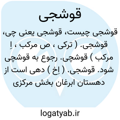 قوشجی. ( ترکی، ص مرکب، اِ مرکب ) قوشچی. رجوع به قوشچی شود. قوشجی. ( اِخ ) دهی است از دهستان ابرغان بخش مرکزی شهرستان سراب، سکنه آن 1001 تن. آب آن از نهر. محصول آن غلات، حبوب و شغل اهالی آن زراعت و گله داری است.راه مالرو دارد. ( از فرهنگ جغرافیایی ایران ج 4 ).