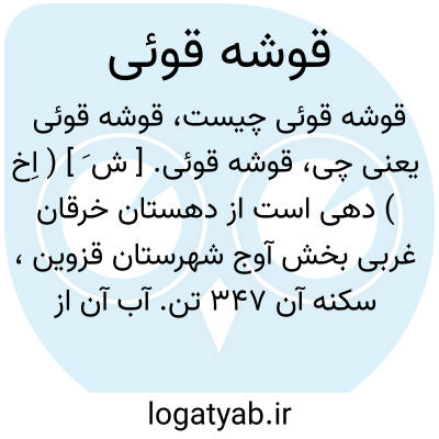 قوشه قوئی. [ ش َ ] ( اِخ ) دهی است از دهستان خرقان غربی بخش آوج شهرستان قزوین، سکنه آن 347 تن. آب آن از چشمه. محصول آن غلات، نخود و عسل.شغل اهالی زراعت و صنایع دستی زنان آنجا قالی و جاجیم بافی است. راه مالرو دارد. مزرعه کوچک جزء این ده منظور شده است. ( از فرهنگ جغرافیایی ایران ج 1 ).