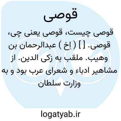 قوصی. [ ] ( اِخ ) عبدالرحمان بن وهیب. ملقب به زکی الدین. از مشاهیر ادباء و شعرای عرب بود و به وزارت سلطان مظفر صاحب حما نایل آمد. وی بسال 640 هَ. ق. در زندان به قتل رسید. ( قاموس الاعلام ترکی و ریحانة الادب ج 3 ص 325 ).