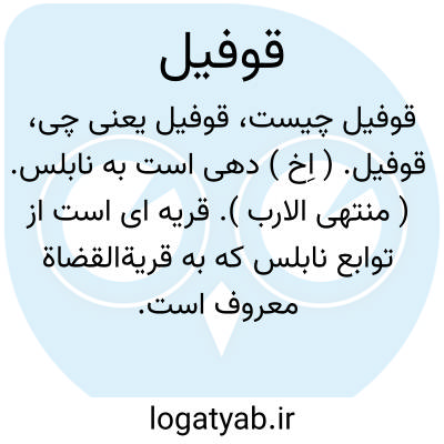 قوفیل. ( اِخ ) دهی است به نابلس. ( منتهی الارب ). قریه ای است از توابع نابلس که به قریةالقضاة معروف است. ( از معجم البلدان ).