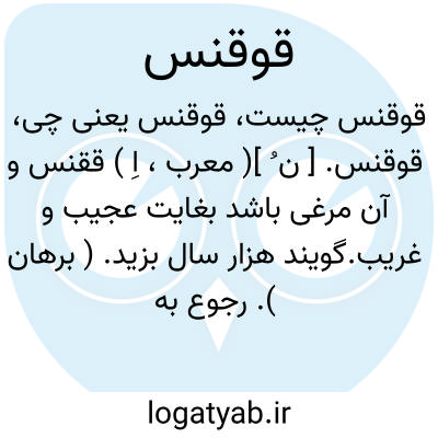 قوقنس. [ ن ُ ]( معرب، اِ ) ققنس و آن مرغی باشد بغایت عجیب و غریب.گویند هزار سال بزید. ( برهان ). رجوع به ققنس شود.