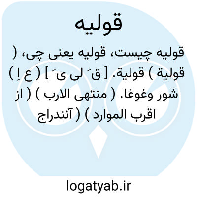 ( قولیة ) قولیة. [ ق َ لی ی َ ] ( ع اِ ) شور وغوغا. ( منتهی الارب ) ( از اقرب الموارد ) ( آنندراج ).