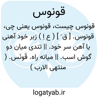 قونوس. [ ق َ ] ( ع اِ ) زبر خود آهنی یا آهن سر خود. || تندی میان دو گوش اسب. || میانه راه. قَونَس. ( منتهی الارب ) ( از اقرب الموارد ). رجوع به قونس شود.