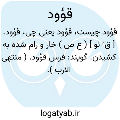 قؤود. [ ق َ ئو ] ( ع ص ) خار و رام شده به کشیدن. گویند: فرس قؤود. ( منتهی الارب ).