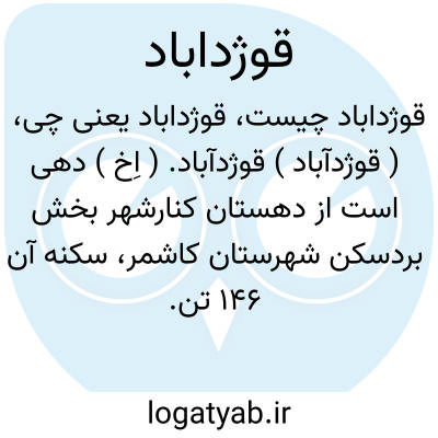 ( قوژدآباد ) قوژدآباد. ( اِخ ) دهی است از دهستان کنارشهر بخش بردسکن شهرستان کاشمر، سکنه آن 146 تن. آب از قنات. محصول آن غلات، پنبه و شغل اهالی زراعت است. راه اتومبیل رو دارد. ( از فرهنگ جغرافیایی ایران ج 9 ).