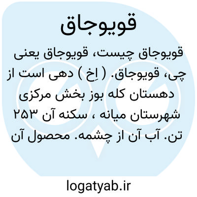 قویوجاق. ( اِخ ) دهی است از دهستان کله بوز بخش مرکزی شهرستان میانه، سکنه آن 253 تن. آب آن از چشمه. محصول آن غلات، پنبه، برنج و شغل اهالی آنجا زراعت و گله داری است.راه مالرو دارد. ( از فرهنگ جغرافیایی ایران ج 4 ).