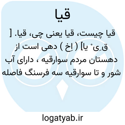قیا. [ ق ِی ْ یا] ( اِخ ) دهی است از دهستان مردم سوارقیه، دارای آب شور و تا سوارقیه سه فرسنگ فاصله دارد. این ده دارای جمعیت و مزارع و نخلستانهاست. ( از معجم البلدان ).