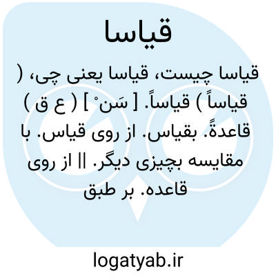 ( قیاساً ) قیاساً. [ سَن ْ ] ( ع ق ) قاعدةً. بقیاس. از روی قیاس. با مقایسه بچیزی دیگر. || از روی قاعده. بر طبق قاعده جاری. مقابل سماعاً.