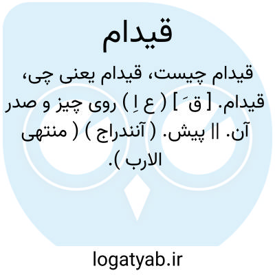 قیدام. [ ق َ ] ( ع اِ ) روی چیز و صدر آن. || پیش. ( آنندراج ) ( منتهی الارب ).