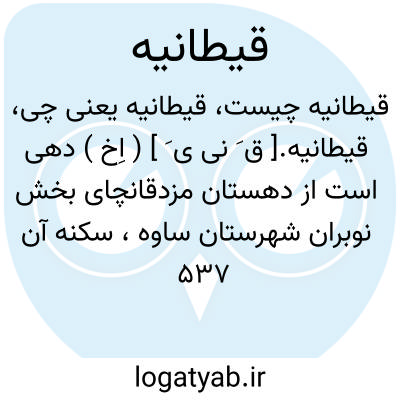 قیطانیه.[ ق َ نی ی َ ] ( اِخ ) دهی است از دهستان مزدقانچای بخش نوبران شهرستان ساوه، سکنه آن 537 تن. آب آن از قنات. محصول آن غلات، بنشن، پنبه و مختصر انگور. شغل اهالی زراعت، مختصر گله داری و صنایع دستی زنان آنجا قالیچه و جاجیم بافی است. راه مالرو دارد و اتومبیل از آن میتوان برد. ( از فرهنگ جغرافیایی ایران ج 1 ).