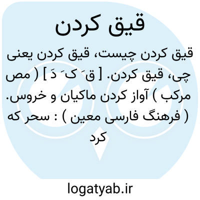 قیق کردن. [ ق َ ک َ دَ ] ( مص مرکب ) آواز کردن ماکیان و خروس. ( فرهنگ فارسی معین ):