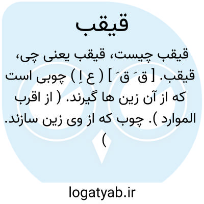 قیقب. [ ق َ ق َ ] ( ع اِ ) چوبی است که از آن زین ها گیرند. ( از اقرب الموارد ). چوب که از وی زین سازند. ( منتهی الارب ). || زین. || آزاد درخت. || دوالی است که هر دو کوهه زین را بدان بندند. || آهن پاره ای که در میان آن فاس لگام باشد. ( منتهی الارب ) ( از اقرب الموارد ).