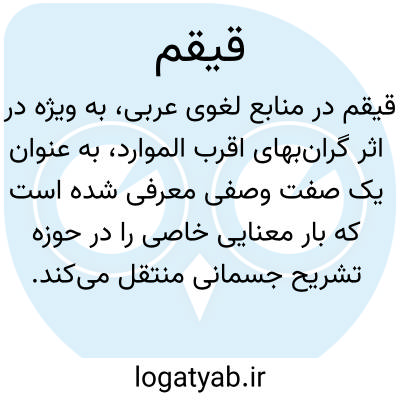 قیقم در منابع لغوی عربی، به ویژه در اثر گران‌بهای اقرب الموارد، به عنوان یک صفت وصفی معرفی شده است که بار معنایی خاصی را در حوزهٔ تشریح جسمانی منتقل می‌کند. این واژه، در اصل، وصفی است برای حالتی که در ناحیهٔ گلو و مجرای تنفسی رخ می‌دهد و دقیقاً به معنای گشاده گلو یا فراخ گلو به کار می‌رود. تحلیل این ترکیب لغوی نشان می‌دهد که این واژه احتمالاً برای توصیف افرادی به کار می‌رفته که دارای حنجره یا دهانهٔ حلق بازتری بوده‌اند؛ هرچند که کاربرد دقیق آن در ادبیات فارسی معیار کمتر به چشم می‌خورد و بیشتر در متون لغوی به عنوان یک واژهٔ کم‌نظیر ثبت شده است.