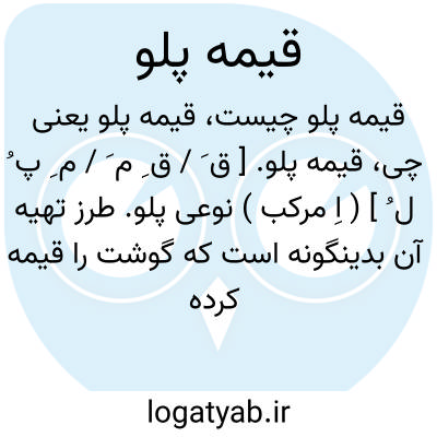 ( اسم ) نوعی پلو. طرز تهیه: گوشت را قیمه کرده بعد از سرخ شدن پیاز در روغن قیمه را می ریزند بحدی که پخته گردد و پس از پخته شدن که بروغن آمد آن را در لای پلو گذارند.