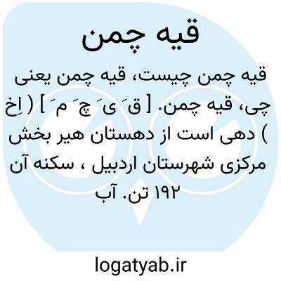 قیه چمن. [ ق َ ی َ چ َ م َ ] ( اِخ ) دهی است از دهستان هیر بخش مرکزی شهرستان اردبیل، سکنه آن 192 تن. آب آن از چشمه. محصول آن غلات و شغل اهالی آنجا زراعت و گله داری است.راه مالرو دارد. ( از فرهنگ جغرافیایی ایران ج 4 ).