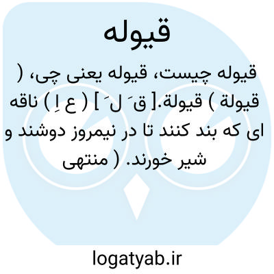 ( قیولة ) قیولة.[ ق َ ل َ ] ( ع اِ ) ناقه ای که بند کنند تا در نیمروز دوشند و شیر خورند. ( منتهی الارب ) ( از اقرب الموارد ).