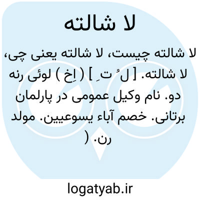 لا شالته. [ ل ُ ت ِ ] ( اِخ ) لوئی رنه دو. نام وکیل عمومی در پارلمان برتانی. خصم آباء یسوعیین. مولد رن. ( 1701-1785 م. ).