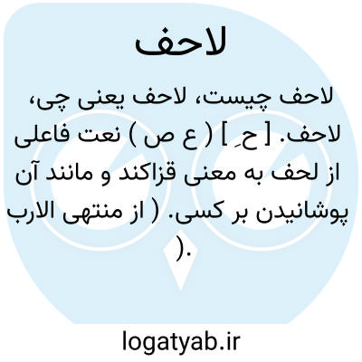 لغت نامه دهخدا لاحف. [ ح ِ ] ( ع ص ) نعت فاعلی از لحف به معنی قزاکند و مانند آن پوشانیدن بر کسی. ( از منتهی الارب ).