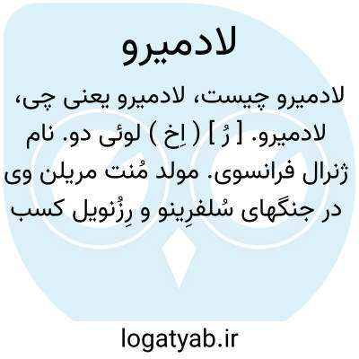 لادمیرو. [ رُ ] ( اِخ ) لوئی دو. نام ژنرال فرانسوی. مولد مُنت مریلن وی در جنگهای سُلفرِینو و رِزُنویل کسب شهرت کرده است. ( 1808-1898 م. ).