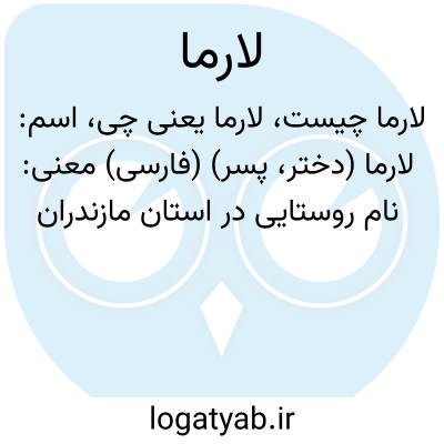 لارما. ( اِخ ) موضعی در «میان سی » از هزار جریب مازندران. ( مازندران و استرآباد رابینو ص 121 و 124 بخش انگلیسی ). دهی از دهستان گلیجان رستاق بخش مرکزی شهرستان ساری. واقع در 39 هزارگزی جنوب ساری و دو هزارگزی خاوری راه عمومی دودانگه و رودخانه تجن. کوهستانی و جنگلی. معتدل و مرطوب و مالاریائی. دارای 300 تن سکنه. زبان فارسی و مازندرانی، آب از رودخانه تجن. محصول برنج و غلات و لبنیات. شغل اهالی زراعت و راه مالرو است. ( فرهنگ جغرافیائی ایران ج 3 ).