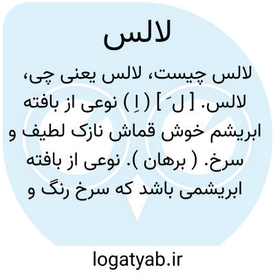 لالس. [ ل َ ] ( اِ ) نوعی از بافته ابریشم خوش قماش نازک لطیف و سرخ. ( برهان ). نوعی از بافته ابریشمی باشد که سرخ رنگ و بغایت نازک و لطیف بودو آن را لاه نیز گویند. ( جهانگیری ). لاه: