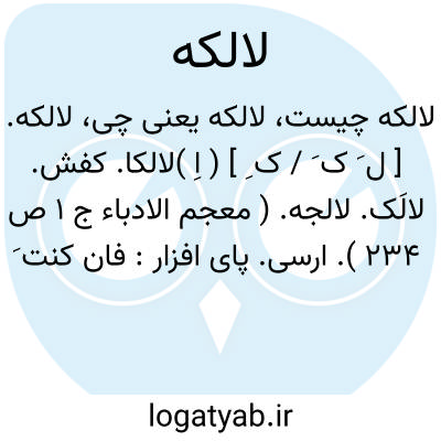 لالکه. [ ل َ ک َ / ک ِ ] ( اِ )لالکا. کفش. لالَک. لالجه. ( معجم الادباء ج 1 ص 234 ). ارسی. پای افزار: فان کنت َ غسلت التکه و الَلالکه عرفنی لانفذ عوضها. ( معجم الادباء چ اروپا ج 3 ص 194 ).