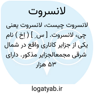 لانسروت. [ س ِ ] ( اِخ ) نام یکی از جزایر کاناری واقع در شمال شرقی مجمعالجزایر مذکور. دارای 53 هزار گز درازا و 22 هزار گز پهنا و 16000 تن سکنه. قصبه تکیژه مرکز آن است. ( قاموس الاعلام ترکی ).