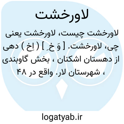 لاورخشت. [ وَ خ ِ ] ( اِخ ) دهی از دهستان اشکنان، بخش گاوبندی، شهرستان لار. واقع در 48 هزارگزی خاور گاوبندی. دامنه، گرمسیر و مالاریائی. دارای 382 تن سکنه. آب آن از چاه و باران. محصول آن غلات و خرما و لبنیات. شغل اهالی زراعت و گله داری و راه آن مالرو است. ( فرهنگ جغرافیائی ایران ج 7 ).