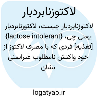{lactose intolerant} [تغذیه] فردی که با مصرف لاکتوز از خود واکنش نامطلوب غیرایمنی نشان می دهد