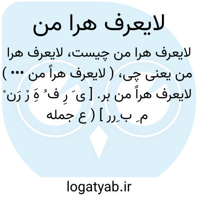 ( لایعرف هراً من ••• ) لایعرف هراً من بر. [ ی َ رِ ف ُ هَِ رْ رَن ْ م ِ ب ِرر ] ( ع جمله فعلیه ) او نمیشناسد رنج رسان را از راحت رسان یا گربه را از موش یا نافرمانبردار را از فرمانبردار یا رنجش را از اکرام یا گربه بچه را از روباه بچه.