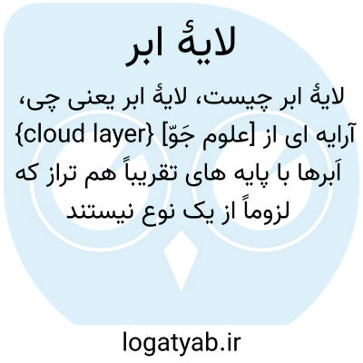 فرهنگستان زبان و ادب {cloud layer} [علوم جَوّ] آرایه ای از اَبرها با پایه های تقریباً هم تراز که لزوماً از یک نوع نیستند
