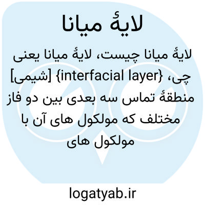 {interfacial layer} [شیمی] منطقۀ تماس سه بعدی بین دو فاز مختلف که مولکول های آن با مولکول های هر دو فاز برهم کنش دارند
