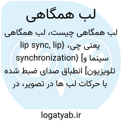 {lip sync, lip synchronization} [سینما و تلویزیون] انطباق صدای ضبط شده با حرکات لب ها در تصویر، در هنگام ادای کلمات