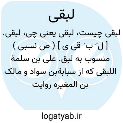 لبقی. [ ل َ ب َ قی ی ] ( ص نسبی ) منسوب به لبق. علی بن سلمة اللبقی که از سبابةبن سواد و مالک بن المغیره روایت کند این نسبت دارد. ( سمعانی ورق 494 ).