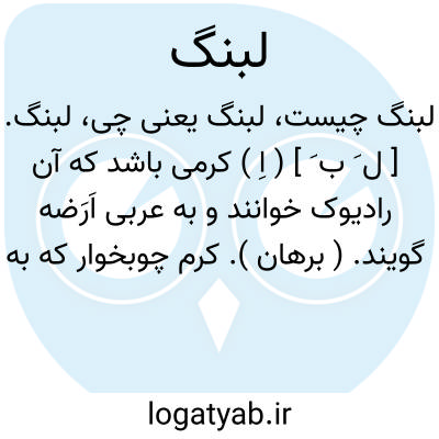لبنگ. [ ل َ ب َ ] ( اِ ) کرمی باشد که آن رادیوک خوانند و به عربی اَرَضه گویند. ( برهان ). کرم چوبخوار که به عربی اَرضَه گویند. ( آنندراج ). موریانه: شیاطین گفتند این کار ارضه است یعنی لبنگ. ( تفسیرابی الفتوح ج 4 ص 162 ). || بید. پت: مراد آن است که در میوه کرم آفریند و در جامه لبنگ. ( تفسیر ابی الفتوح ج 3 ص 258 ).