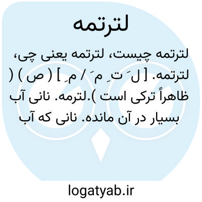 لترتمه. [ ل َ ت ِ م َ / م ِ ] ( ص ) ( ظاهراً ترکی است ).لترمه. نانی آب بسیار در آن مانده. نانی که آب بسیار دارد. نانی که برشته نشده باشد. نانی که خوب نپخته باشد. نانی که خمیرش ور نیامده باشد. نانی سخت سطبرو ناپخته. || حریره یا آشی آب آن بشده.