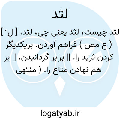 لثد. [ ل َ ] ( ع مص ) فراهم آوردن. بریکدیگر کردن ثرید را. || برابر گردانیدن. || بر هم نهادن متاع را. ( منتهی الارب ).