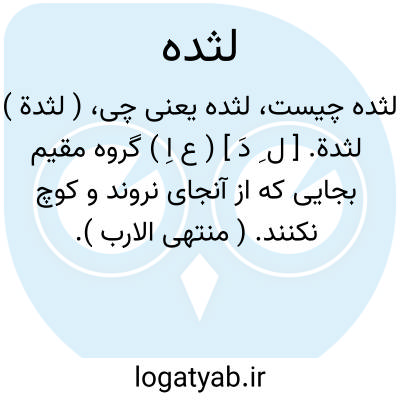 ( لثدة ) لثدة. [ ل ِ دَ ] ( ع اِ ) گروه مقیم بجایی که از آنجای نروند و کوچ نکنند. ( منتهی الارب ). آن گروه که جایی مقام کنند. ( مهذب الاسماء ).