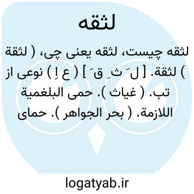 ( لثقة ) لثقة. [ ل َ ث ِ ق َ ] ( ع اِ ) نوعی از تب. ( غیاث ). حمی البلغمیة اللازمة. ( بحر الجواهر ). حمای بلغمیه لازمه.
