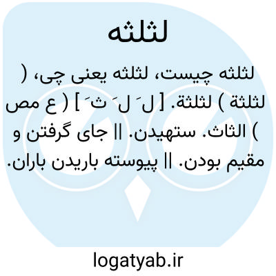 ( لثلثة ) لثلثة. [ ل َ ل َ ث َ ] ( ع مص ) الثاث. ستهیدن. || جای گرفتن و مقیم بودن. || پیوسته باریدن باران. || سست شدن. ( منتهی الارب ). || بند کردن. || بازداشتن. ( منتهی الارب ). || آشکار ناکردن سخن را. || دودله و متردد شدن در کار. || در خاک غلطانیدن و مانده کردن شتر را. ( منتهی الارب ). || اندک راحت سائیدن. ( منتهی الارب ).