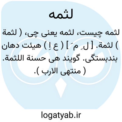 ( لثمة ) لثمة. [ ل ِ م َ ] ( ع اِ ) هیئت دهان بندبستگی. گویند هی حسنة اللثمة. ( منتهی الارب ).