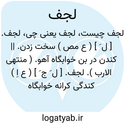 لجف. [ ل َ ج َ ] ( ع اِ ) کندگی کرانه خوابگاه آهو. || مغاکی بر کرانه چاه. جای آب خورد از حوالی تک چاه. || میانه رودبار. ( منتهی الارب ). میانه رود. ( مهذب الاسماء ). میانه وادی. ( منتخب اللغات ). || ایستادنگاه توجبه ( یعنی سیلاب ). ج، الجاف. || چاه سرتنگ فراخ شکم. ( منتهی الارب ).