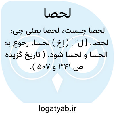 لحصا. [ ل َ ] ( اِخ ) لحسا. رجوع به الحسا و لحسا شود. ( تاریخ گزیده ص 341 و 507 ).