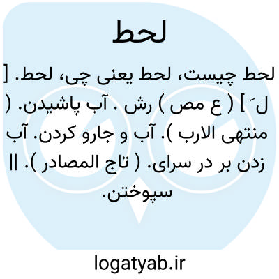 لحط. [ ل َ ] ( ع مص ) رش. آب پاشیدن. ( منتهی الارب ). آب و جارو کردن. آب زدن بر در سرای. ( تاج المصادر ). || سپوختن. || راندن. ( منتهی الارب ).